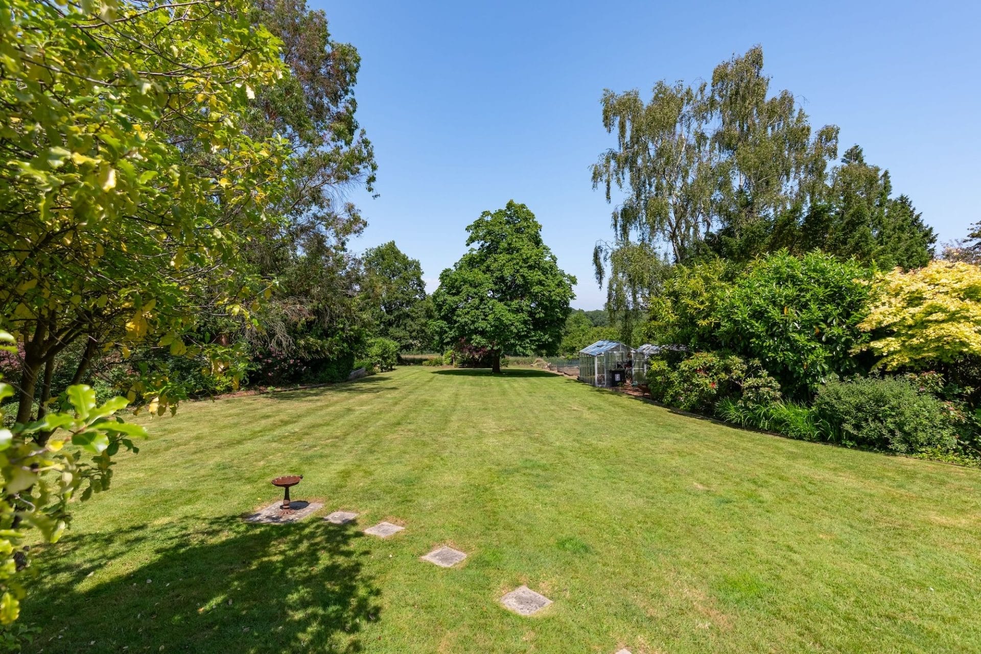 Boasting various patios and terraces accessed from either the breakfast room or sun room, you will find space for all here. This area features a large heated, tiled swimming pool with patio surround and space for outdoor seating to enjoy the sunny weather. The manicured lawns, small orchard and stunning countryside views stretch as far as the eye can see. The grounds are something to behold. Primarily laid to lawn, with mature trees on both sides as well as statement horse-chestnut towards the rear, the house offers privacy and connection to nature, whilst also serving as a magical place for children to play safely. A large greenhouse and four raised vegetable beds encourage the green-fingered among us to provide farm to table freshness.