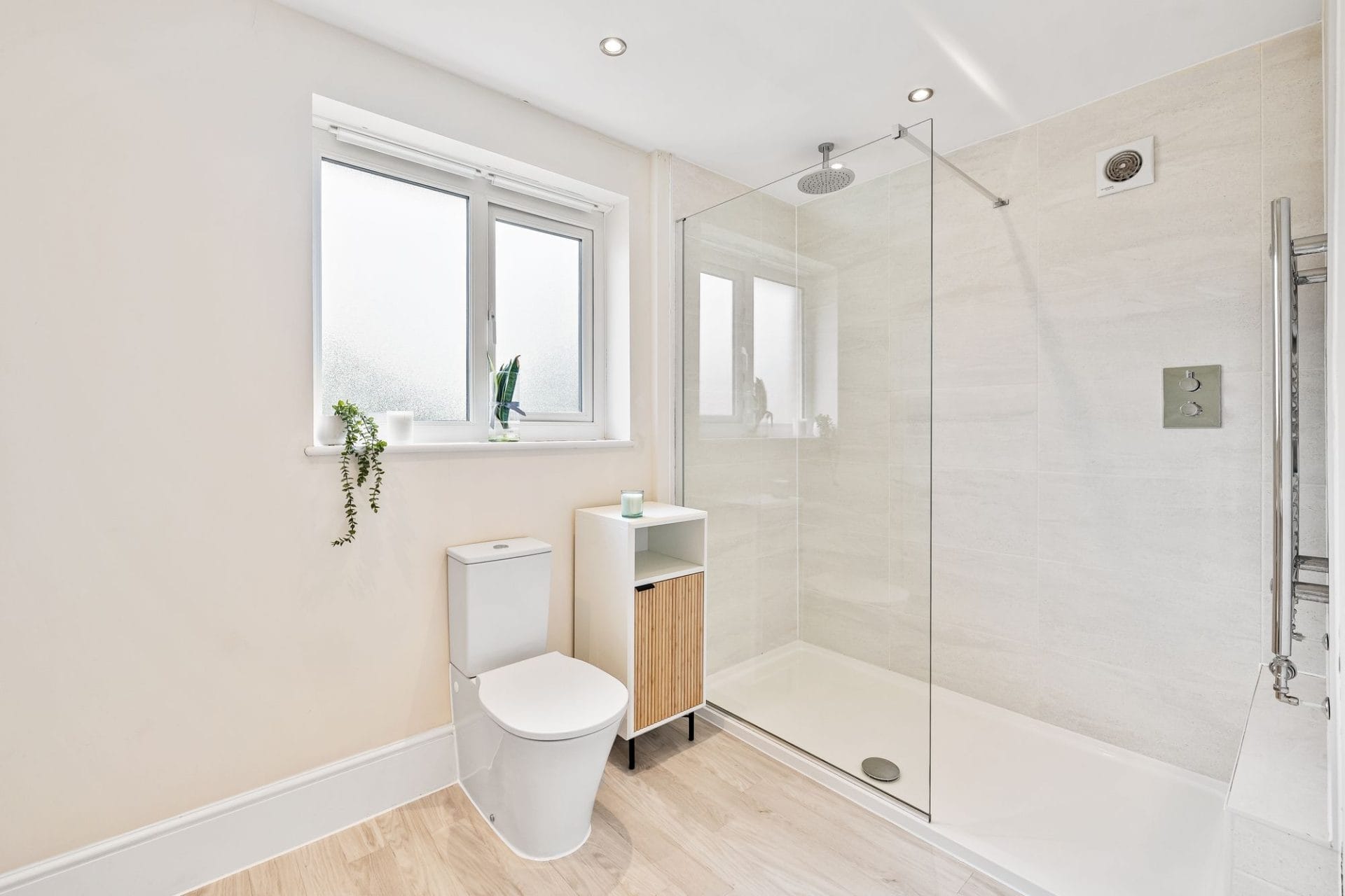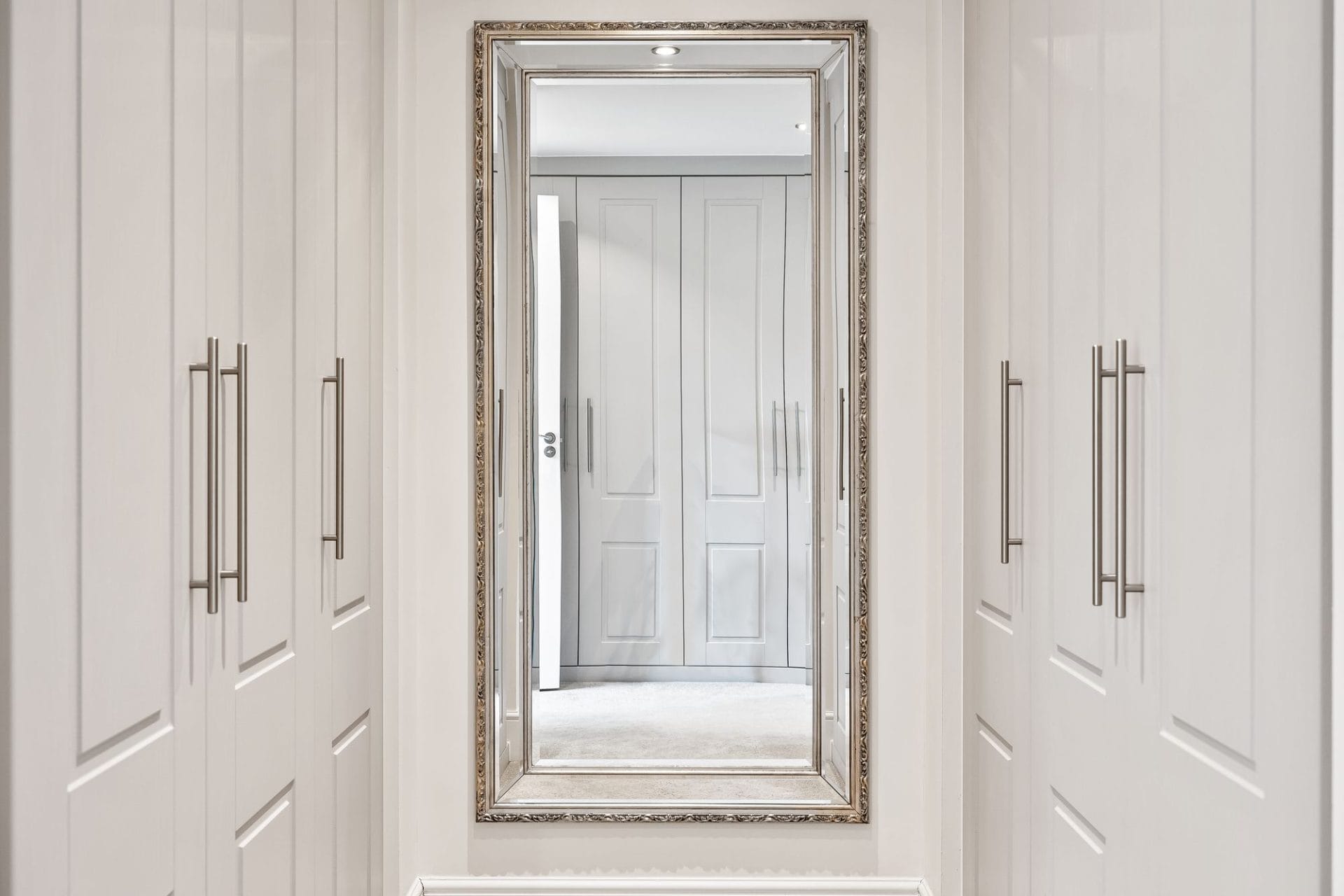 Spacious master bedroom with chic dressing room and en-suite shower room with large walk-in shower and his & hers sinks.