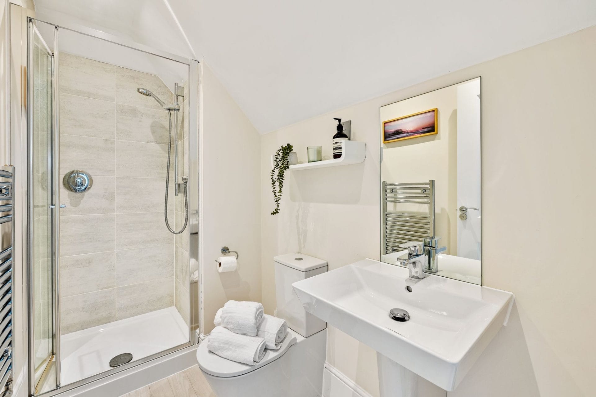 Shower room on top floor serving two bedrooms.