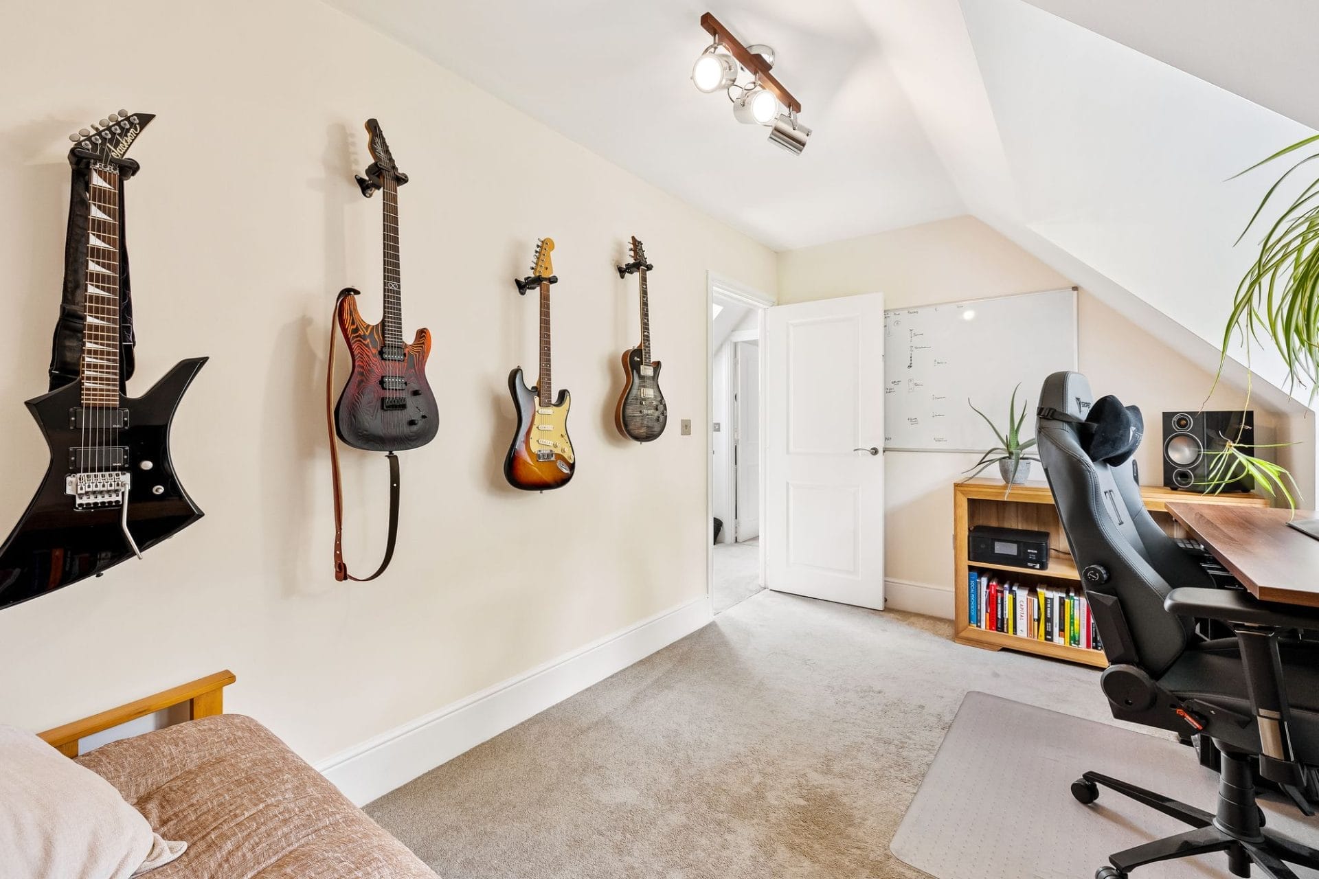 Large double bedroom with access to additional eaves storage room.