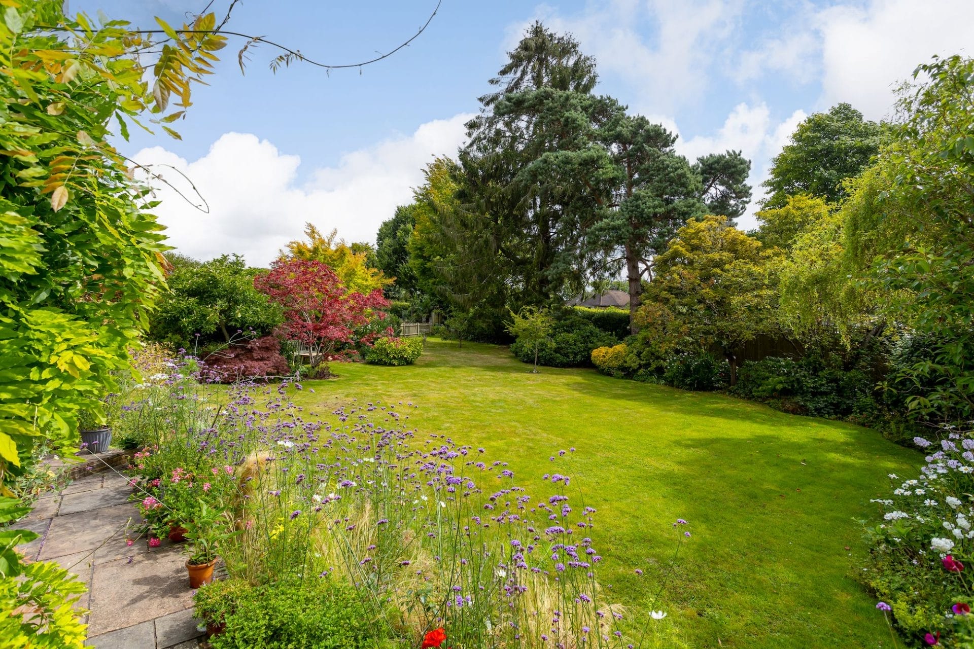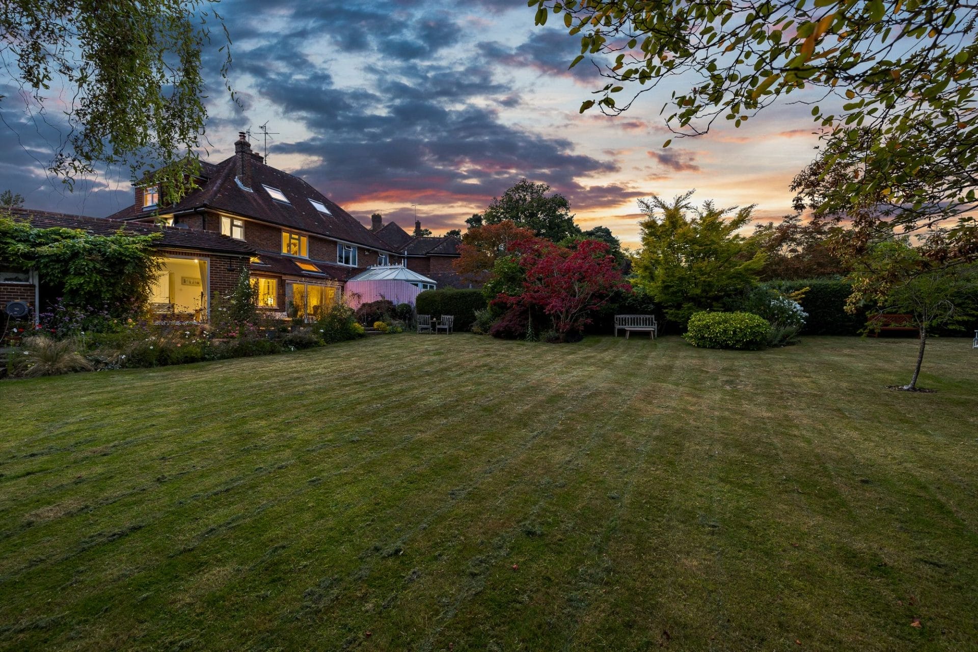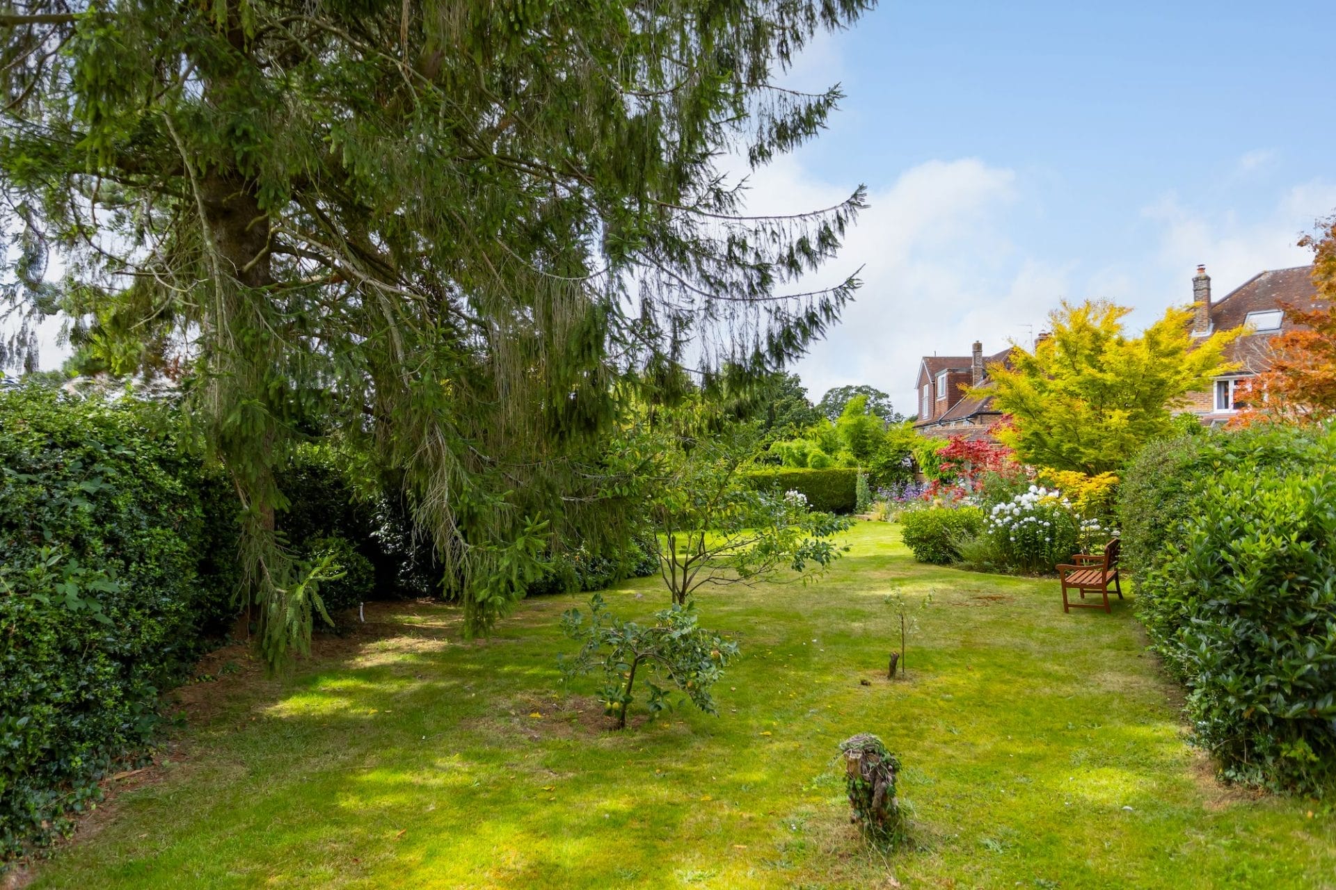 Venture outside to discover the enchanting east-facing garden, a kaleidoscope of colour and interest throughout the seasons. Mostly laid to lawn with mature trees running along the back boundary. A large sandstone patio provides an enticing area for outside furniture. Whether basking in the morning sun with a cup of coffee or hosting al fresco soirées under the stars, this outdoor oasis beckons for moments of joy and tranquility and provides a wonderful space for entertaining and children to play.