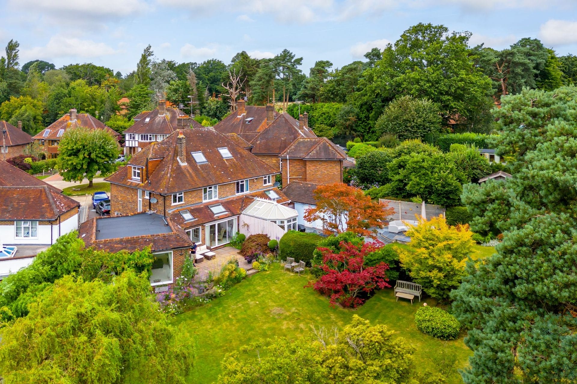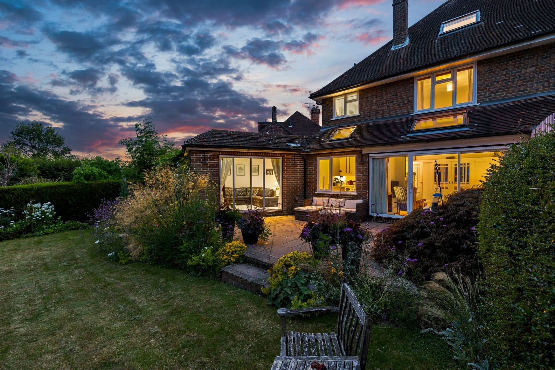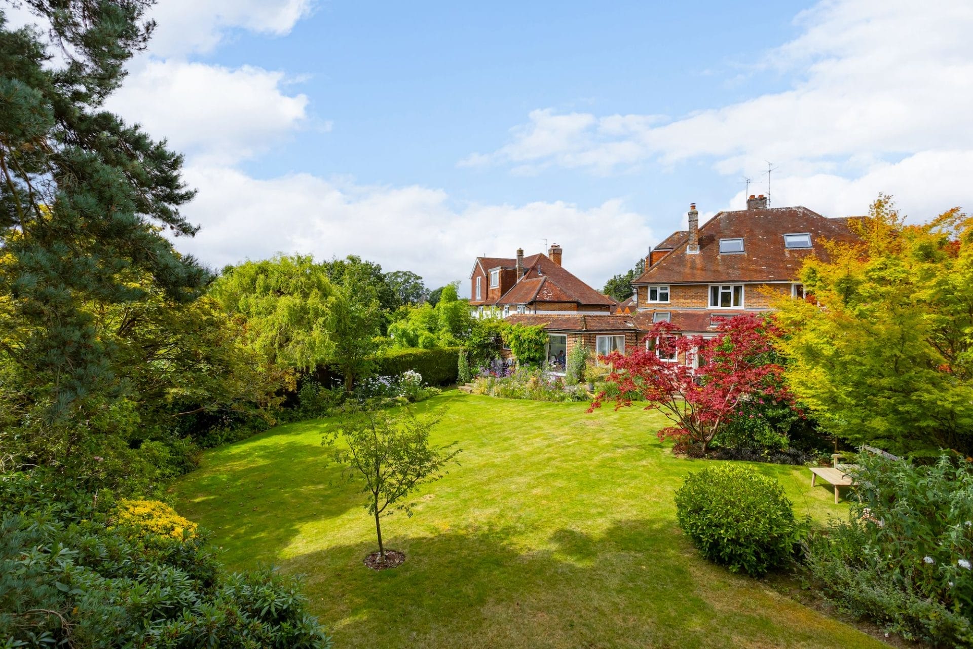 Venture outside to discover the enchanting east-facing garden, a kaleidoscope of colour and interest throughout the seasons. Mostly laid to lawn with mature trees running along the back boundary. A large sandstone patio provides an enticing area for outside furniture. Whether basking in the morning sun with a cup of coffee or hosting al fresco soirées under the stars, this outdoor oasis beckons for moments of joy and tranquility and provides a wonderful space for entertaining and children to play.