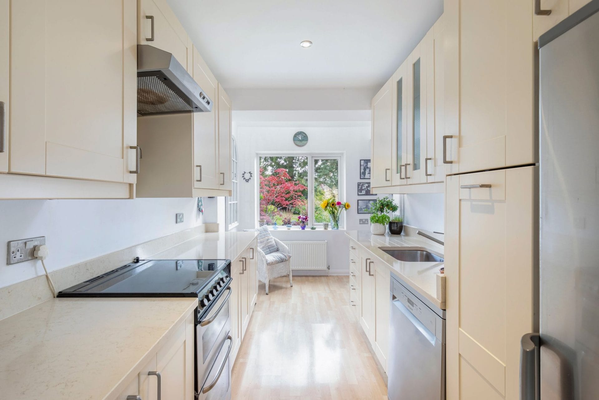 As you step inside, your view is drawn to the large window to the rear of the kitchen overlooking the garden beyond.
