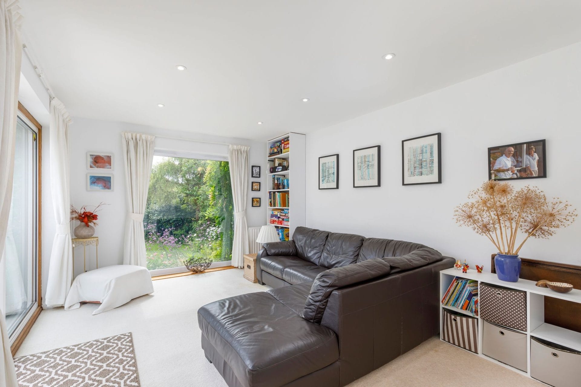 The spacious layout is designed for seamless entertaining, boasting multiple reception rooms that flow effortlessly into one another. The large dining room and living room are cleverly partitioned by sliding doors, allowing for intimate gatherings or open-plan festivities with ease. Patio doors allow the gatherings to spill outside on to the wonderful garden. The kitchen is well stocked with an oven and hob, fridge/freezer and dishwasher and has an ideal spot to enjoy breakfast overlooking the garden.