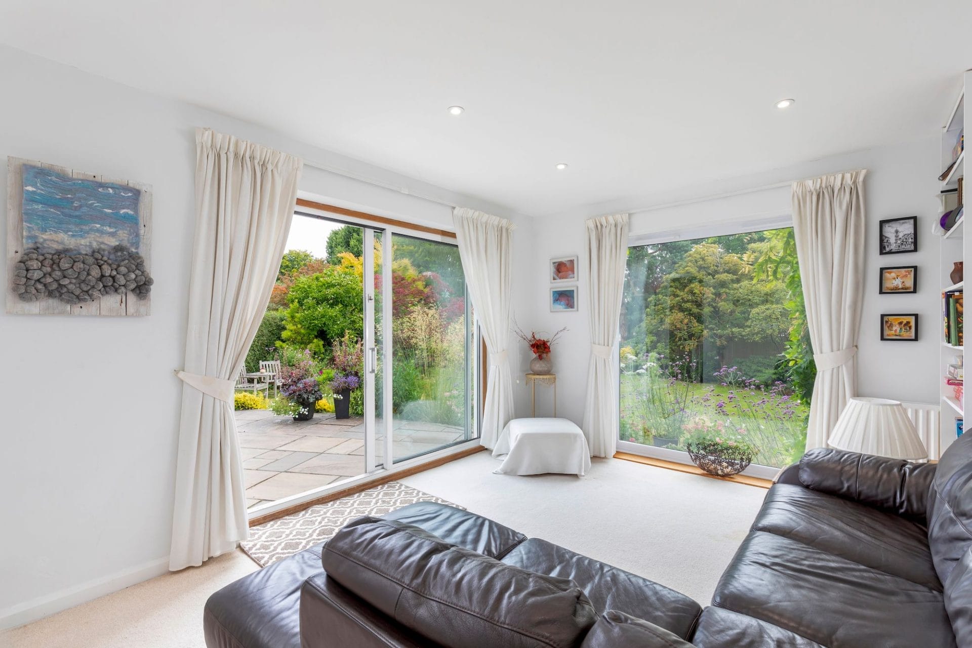 Wonderfully bright garden room with floor to ceiling window and sliding doors opening to the patio and beyond. There is a shower/utility room with laundry facilities off the garden room.