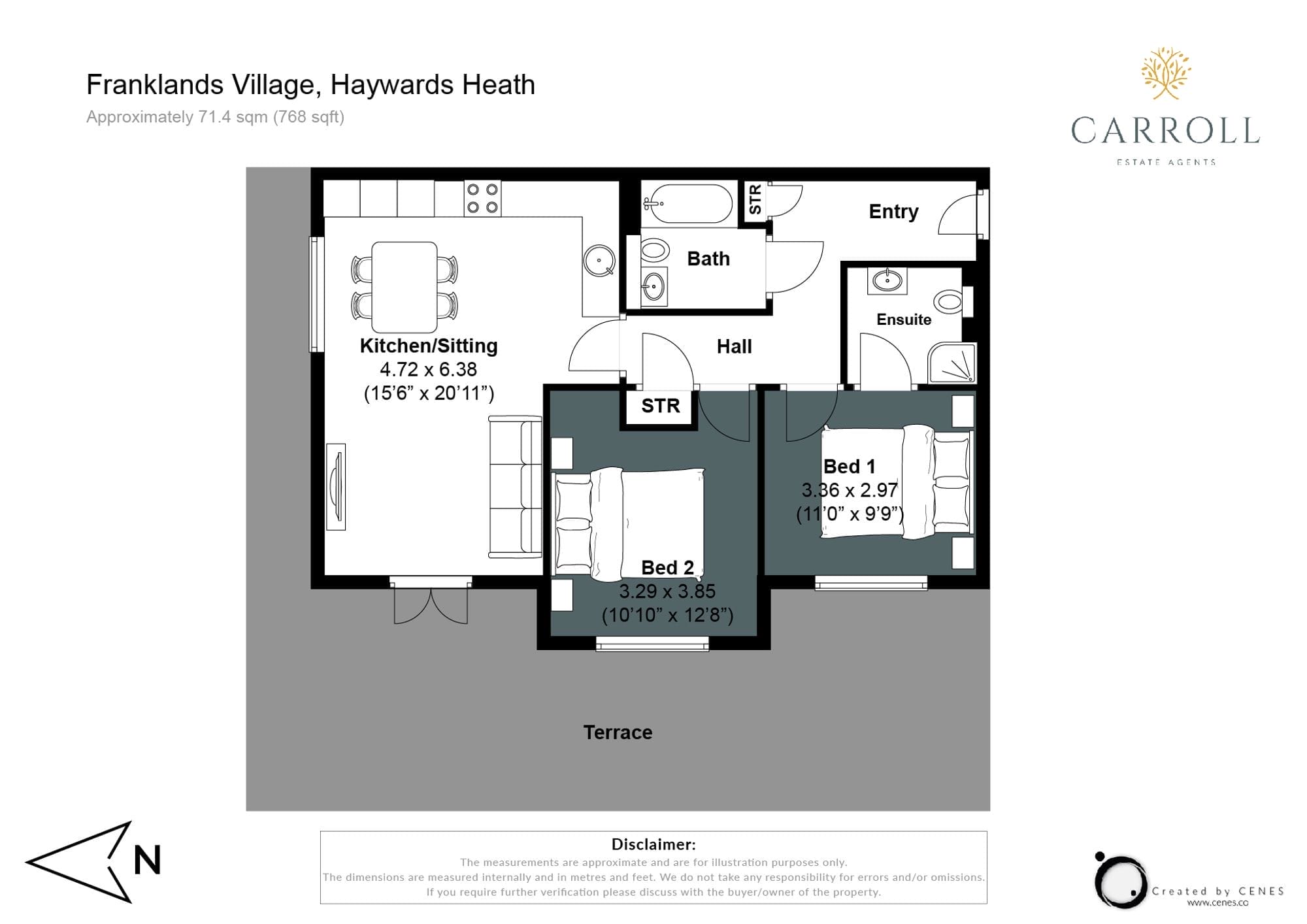 An impressive 2-bedroom ground floor apartment boasting a spacious 768 square feet of accommodation.