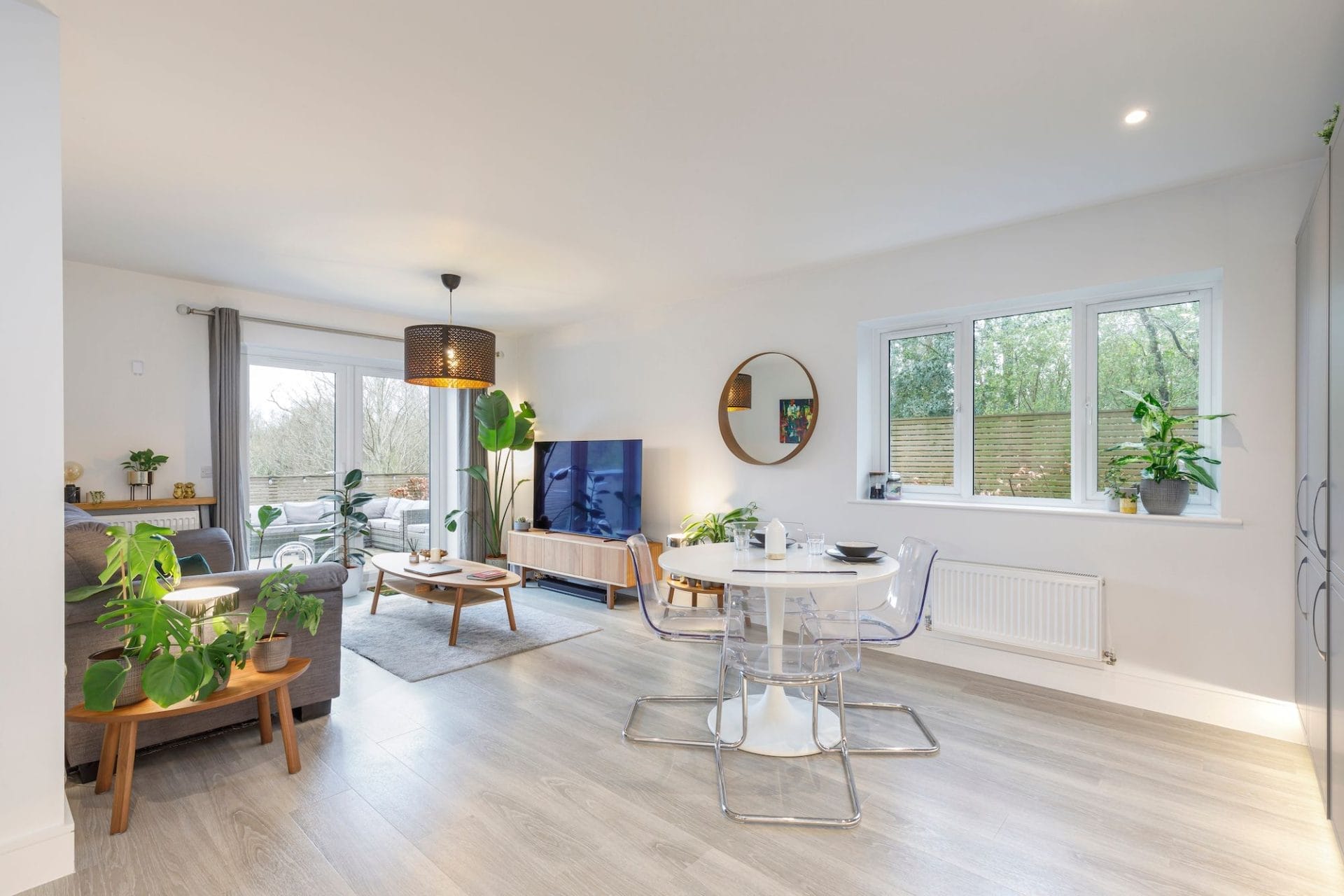 Spacious open plan integrated kitchen and living room.